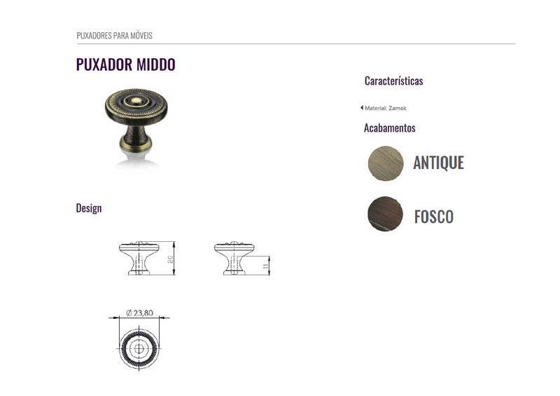 O Puxador Middo tem dois tamanhos diferentes e dois tipos de acabamento possibilitando delicadas combinações vintages!