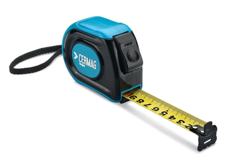 Trena Cermag com 5 Metros, em aço com revestimento em nylon e graduação nos dois lados (cm). Largura da fita 22mm. Não oxida. Quando estica a trena, ela fica travada e para recolher basta pressionar um botão. Com trava de posição, presilha para cinto e gancho auto-ajustável na ponta da fita, permitindo medições internas e externas mais precisas. Material condutor de eletricidade. Para conhecer melhor acesse: www.cermagferragens.com.br